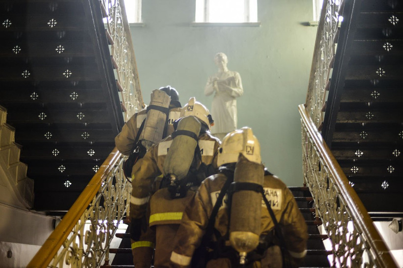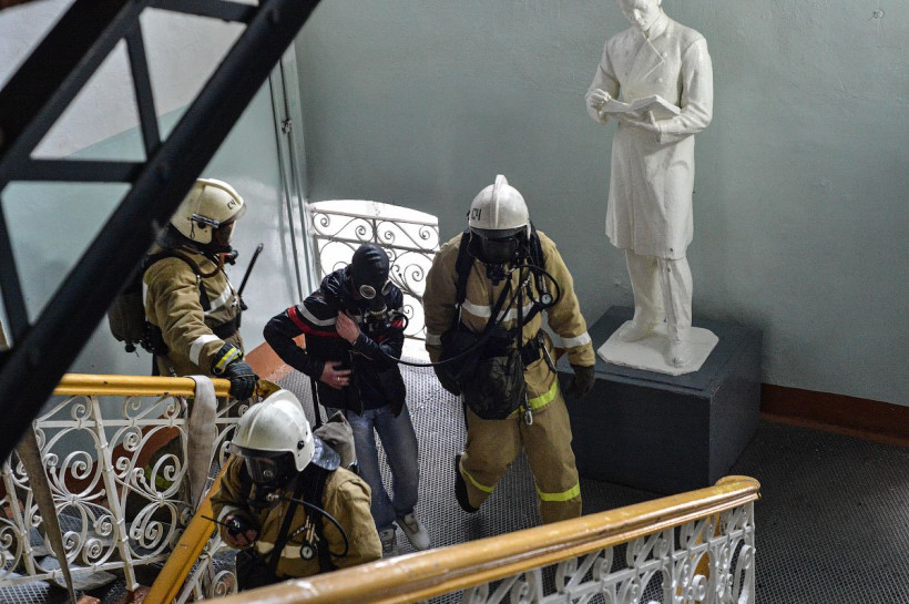 В Благовещенском педуниверситете потушили условный пожар. Фото с места учений