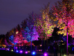 В Благовещенске установили новые уличные напольные светильники. 70 фонарей зажгли накануне вечером в сквере им. Мухина. Светильники вкопаны в землю и подсвечивают деревья разными цветами: синим, зеленым и красным.