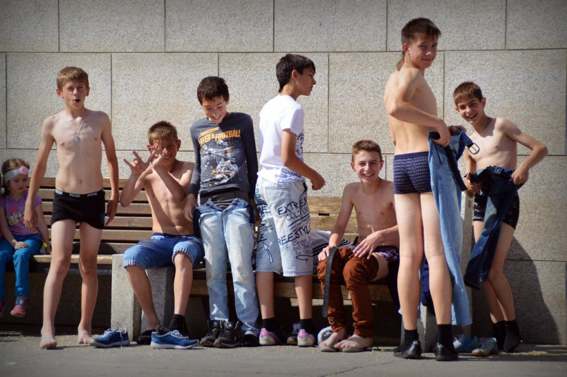 Гидротерапия — друг молодежи. Редкий погожий день обходится без попытки искупаться в Амуре или городском фонтане. Пацанов не останавливает низкая температура воды, и они с завидным упорством продолжают открывать пляжный сезон. Судя по эмоциям, заряд бодрости получается колоссальный. Кроме того, городские пустыри превращаются в пастбища, вопреки революциям в моде украинские мотивы, а дворняги преданно смотрят в глаза прохожим. Пройти мимо и не сделать портретный кадр просто невозможно. Андрей Анохин вновь подсмотрел за жизнью города Благовещенска.