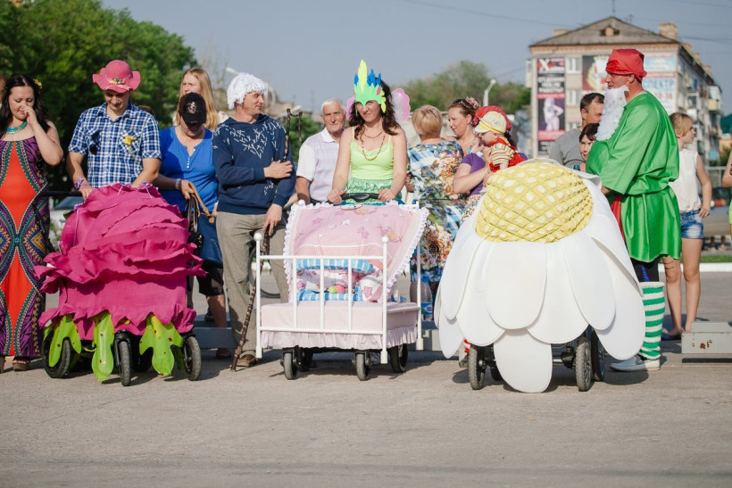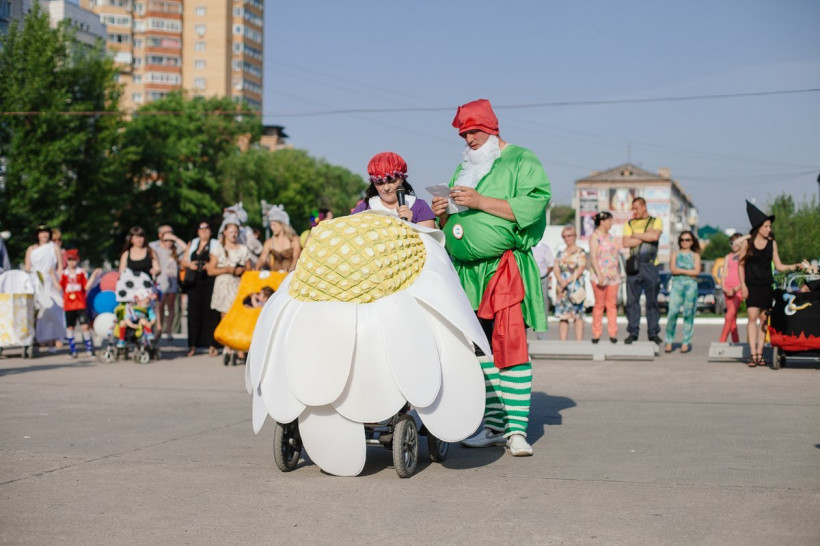 1 июня в областном центре Приамурья состоялся конкурс детского транспорта — колясок. Поучаствовать в шествии первого  авто  пожелали около десяти семей. Тематика оформления транспорта была разнообразной — от гигантских ромашки и розы до огромного куска сыра, футбольного мяча, королевского ложа и даже кипящего магического котла. За конкурсом детских колясок, ставшим в Благовещенске традиционным для Дня защиты детей, наблюдал фотокорреспондент АП Сергей Лазовский.