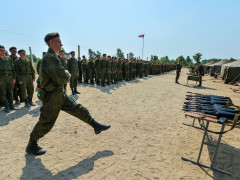 Сегодня, 2 июня, во всех военных частях Приамурья прошли торжественные митинги, посвященные началу летнего периода обучении, и ритуал закрепления за военнослужащими вооружения и боевой техники. Каждому солдату во всех воинских частях региона вручили его автомат, за которым он должен будет следить и с которым будет проходить обучение. Также новых хозяев обрели танки, БМП и бронетранспортеры. В одном из самых крупных мотострелковых соединений в Амурской области, дислоцирующегося в Екатеринославке, военнослужащих поздравил командующий Амурским общевойсковым объединением генерал-лейтенант Сергей Соломатин. За торжественной церемонией в военной части наблюдал фотокорреспондент АП Андрей Оглезнев.