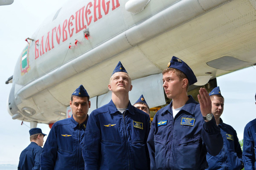 На стратегических бомбардировщиках — самых быстрых винтовых самолетах Ту 95МС, которые находятся на вооружении военной авиабазы Украинка в Серышевском районе, отсутствует система катапультирования. В аварийной ситуации экипажу приходится в прямо смысле слова выскакивать из люка, прихватив парашюты. Но такие сложности, впрочем, как и длительность полета более 8 часов, не пугают парней, мечтающих покорять небо. В гостях у летчиков побывал фотокорреспондент АП Андрей Оглезнев.