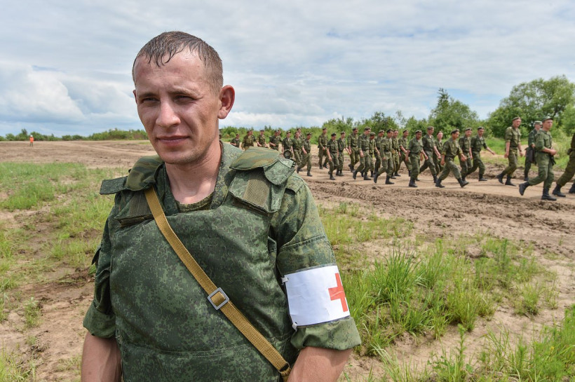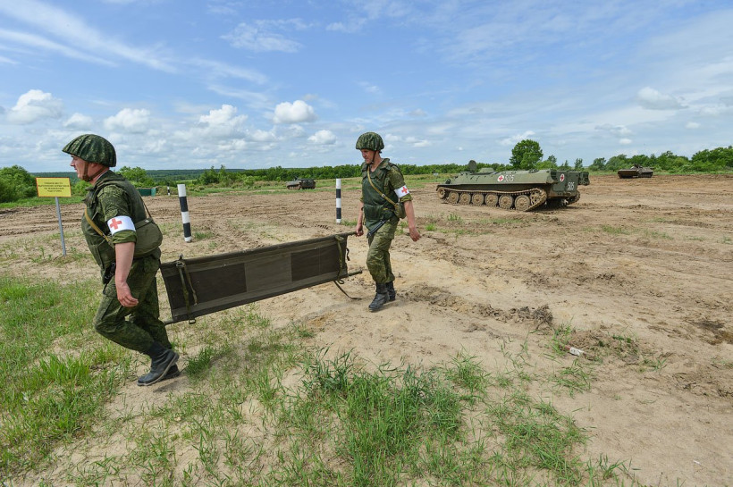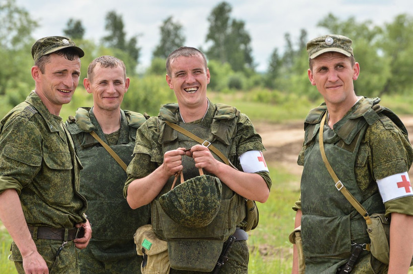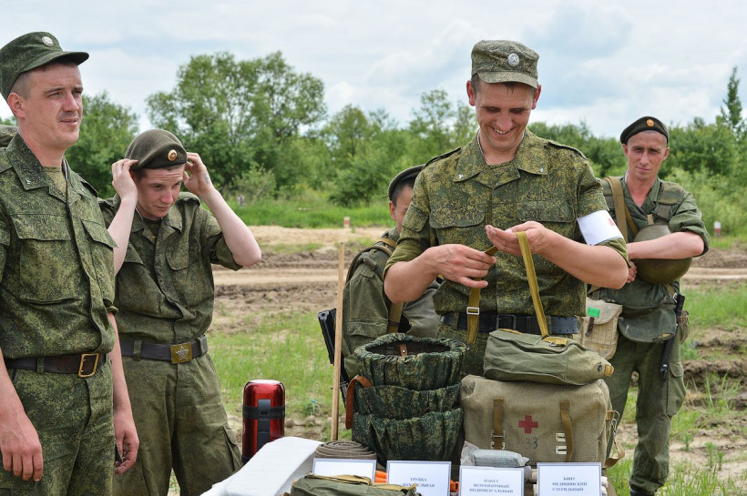 За две минуты санитары должны спасти раненного бойца из подбитой БМП. Такой норматив сдают военнослужащие медицинского взвода мотострелковой бригады, которая дислоцируется в Екатеринославке Амурской области. Солдаты-срочники и контрактники одну неделю в месяц проводят на полигоне, где проходят занятия в полевых условиях. Помимо умения стрелять из автомата и рыть окопы, ребята учатся оказывать неотложную медицинскую помощь не только специальными бинтами и шинами, но и подручными средствами. В преддверии Дня медицинского работника на полигоне побывал фотокорреспондент АП Андрей Оглезнев.