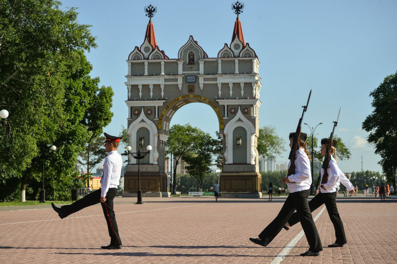 Благовещенские курсанты «России» несут почетный караул у Вечного огня. Фоторепортаж