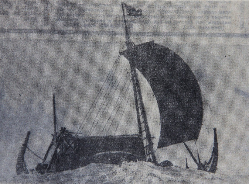 «Из марокканского порта Сафи в направлении Центральной Америки отплыла папирусная лодка «Ра-2». Во главе экипажа, состоящего из восьми человек, — известный норвежский путешественник и исследователь Тур Хейердал, — пишет АП 15 июня 1970 года. - Нынешняя экспедиция является повторением прошлогодней попытки Хейердала пересечь атлантический океан на «Ра-1». На снимке, предоставленном Прессенбильд-ТАСС, — «Ра-2» в Атлантическом океане.