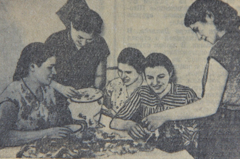1957: молодежь вышивает «Миру-мир»