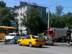 На перекрестке улиц Горького — Комсомольской в Благовещенске произошло страшное ДТП, в котором столкнулись три автомобиля и пострадали трое пассажиров.