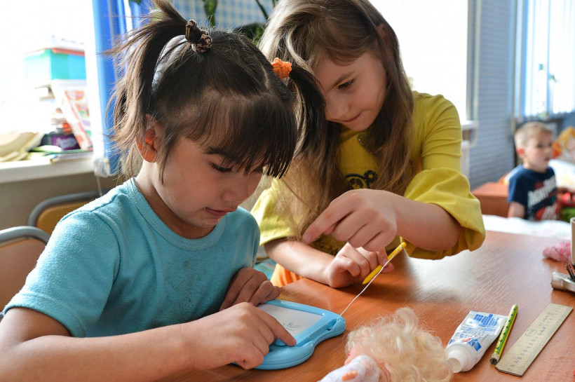 — Вика — моя подруга, — обнимает девочку одногруппница Ксюша. — Мы вместе играем и гуляем. Я учу ее держать ручку и рисовать, помогаю кровать заправлять, одеваться. Она любит рассматривать картинки в книгах, любит рисовать, петь и танцевать. Смотрите, у нее уже волосики отросли.