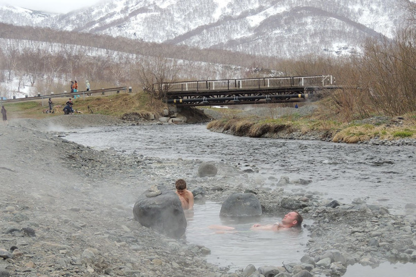 «Ты купальник положила? — беспокоится по телефону моя камчатская подруга. — Не забудь взять, не задавит». Май на Камчатке — ранняя весна. Только начинает таять снег, поэтому в рюкзак запихиваю теплый горнолыжный костюм, ботинки с мехом, свитер. В уголок втискиваю купальник и вспоминаю подругу: «Если на полуострове нет погоды, купайся, расслабляйся и наслаждайся жизнью. Знаешь, как мы Новый год любим встречать? Едем на турбазу, наряжаем елочку, накрываем стол, зажигаем свечи и ныряем в термальную воду. Снег идет, а ты сидишь распаренный…»