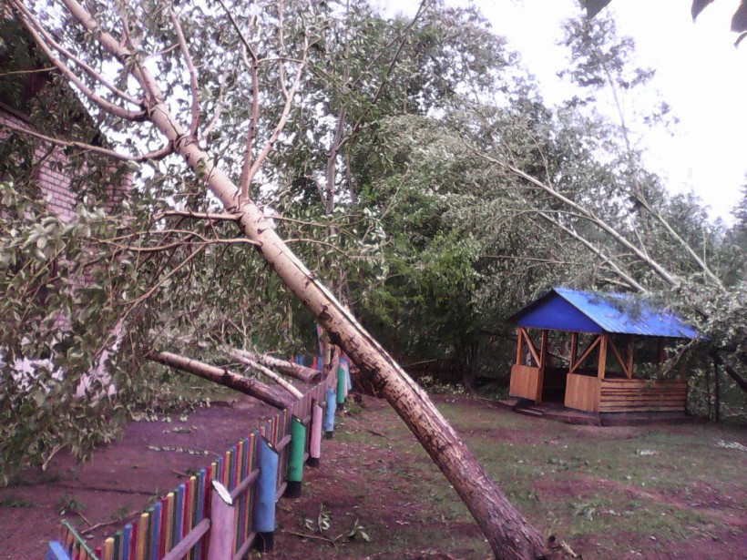 В Февральске ураган вырвал деревья, повалил опоры и сорвал крыши с домов