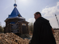 «Чересчур советский поселок» — так говорят прогрессовцы о своем населенном пункте. В 60-е годы он считался поселком рабочей молодежи — сюда съезжались активисты и идейные лидеры для работы на предприятиях и стройках. От советских времен здесь осталось название улиц и уклад жизни населения. Жители продолжают активно ходить на митинги и интересоваться политикой. Сейчас Прогресс — достаточно религиозный поселок. За пять лет здесь появилось четыре поклонных креста, несколько приходов, в ближайшее время достроится часовня на территории кладбища, а через два года откроется и православный храм в честь Рождества Христова. О том, какие грехи хотят отмолить прогрессовцы и почему здесь много внимания уделяют религии, узнавал наш корреспондент.