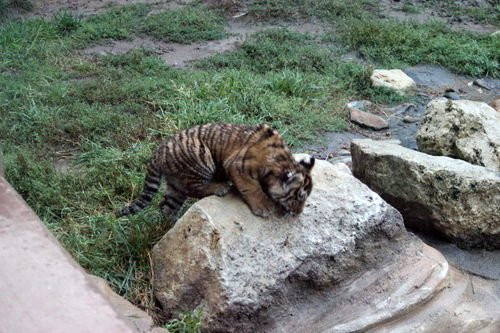 Они появились год назад в окружном зоопарке Sedgwick County и стали любимцами публики. Появления малышей здесь ждали долгие годы, местным тигрицам не раз проводили процедуру искусственного оплодотворения. В 2012-м у одной из самок родился детеныш «из пробирки», но, к сожалению, погиб. А в прошлом году в зоопарке неожиданно образовалась семейная пара: 8-летняя Талали и 4-летний Иван. И уже 6 июля 2013-го они стали счастливыми родителями. Малышей назвали по-русски: Наташа и Царь.