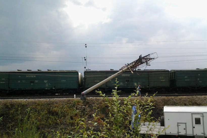 Помимо ЛЭП, ветер свалил еще две железнодорожные мачты освещения — они упали прямо на стоявший на путях грузовой состав. Из-за этого поезд Комсомольск — Тында пришлось задержать на час.