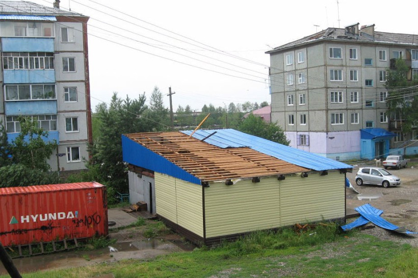 Больше всего разрушений стихия нанесла в Февральске. Дождь с сильными порывами ветра начался здесь около 14.20 в минувшую пятницу. Ветер был такой силы, что выбивал пластиковые стекла, переворачивал детские горки, рвал с корнем деревья и срывал крыши. Кровельное покрытие оказалось повреждено на семи многоквартирных домах, где проживают более 500 человек.