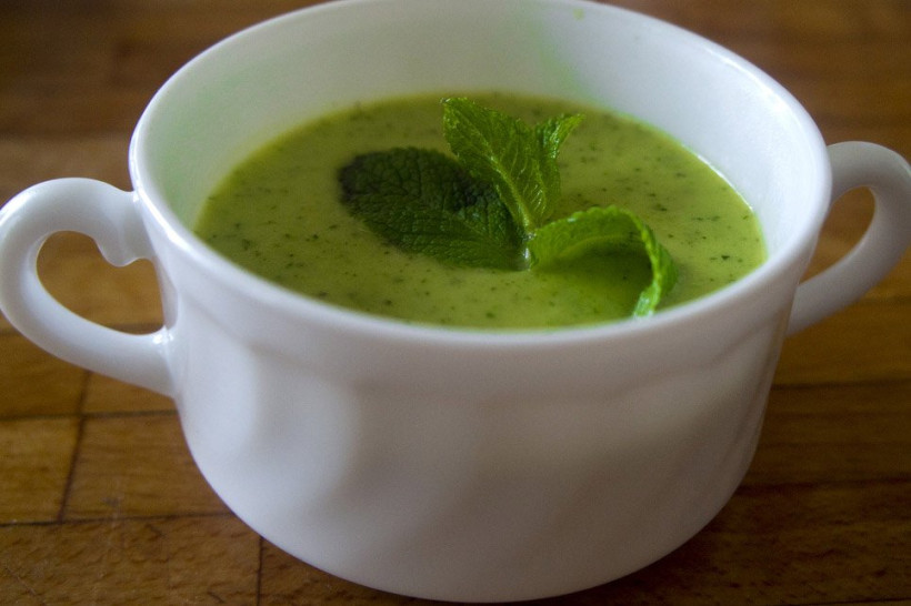 Нарезать цукини на длинные ломтики, выложить на тарелку и сбрызнуть соевым соусом, обжарить на сковородке с двух сторон. Главное, чтобы ломтики не ломались и не были сухие, если нужно, подлейте масло. В блендере измельчить мяту и петрушку, в пропорции 2:1. Смешать творог или мягкий сыр с зеленью, добавить измельченного чеснока 2—3 зубчика. На край ломтика цукини выложить начинку и скрутить рулет, закрепить зубочистками. Разложить на тарелке и убрать в холодильник на 2 часа. Перед подачей сбрызнуть острым оливковым маслом и украсить мятой.