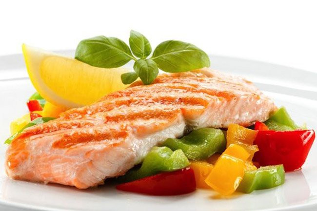 Стейк семги общим весом 300 г, цукини — 1 шт., помидор — 1 шт., сладкий перец — 1 шт., лимон — 1 шт., белые семена кунжута — 4 ст. л., рафинированное растительное масло — 2 ст. л., молотый черный перец, соль.