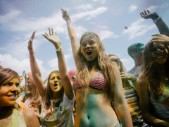 Несколько сотен молодых людей швыряли друг в друга пригоршни сухих красок всех цветов радуги, обливались водой и танцевали. В Благовещенске впервые проходит индийский праздник красок «Холи» Красочное мероприятие стартовало на турбазе «Метехи» в районе второго Владимировского озера сегодня днем и продлится до завтрашнего утра. Для праздника организаторы закупили пол тонны специальной краски. Участникам фестиваля ее раздавали бесплатно. Для отдыхающих также организовали соревнования по поеданию хот-догов, диско-площадку, конкурсы для детей, турнир по пляжному волейболу и многое другое. На главной сцене весь день играли рок-группы. В том числе выступили группы Be Happy, K.E.Fear, а рокеры NoMoreReasons презентовали новый альбом. Но главными событиями праздника стали, конечно, массовые запуски краски, после которых никому из участников не удалось остаться чистым. Не стали исключением и корреспонденты АП Елена Васильева и Сергей Лазовский.