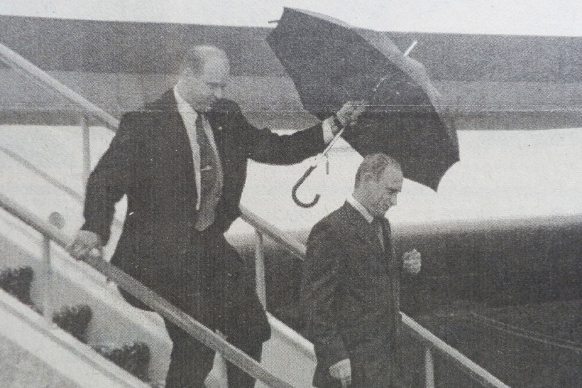 «Владимир Путин прилетел в Приамурье и привез дождь. Президентский Ил-62 прилетел по расписанию — в 14.00, — рассказывала газета 21 июля 2000 года о визите в Приамурье первого лица государства. — Сразу к нему подкатили два трапа, по одному спустилась охрана президента, по второму через несколько минут спустился сам Путин. Резкий порыв ветра достиг и президента, но думается, неласковость погоды смягчило тепло встречи. Эскорт из 25 автомобилей покинул аэропорт. В планах президента — посещение погранзаставы "Западная", поездка на погранкатере по Амуру, возложение венков к памятнику погибшим в Великой Отечественной войне, встреча в областном музее с творческой интеллигенцией, совещание с руководителями региона».