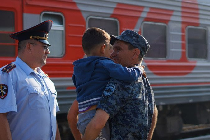 Сегодня, 25 июля, в Благовещенск из командировки в Северо-Кавказский регион вернулся сводный отряд полиции амурского управления МВД. В его состав вошли сотрудники различных подразделений из 10 районов области. Парней встречал главный полицейский региона генерал-майор Николай Аксенов.