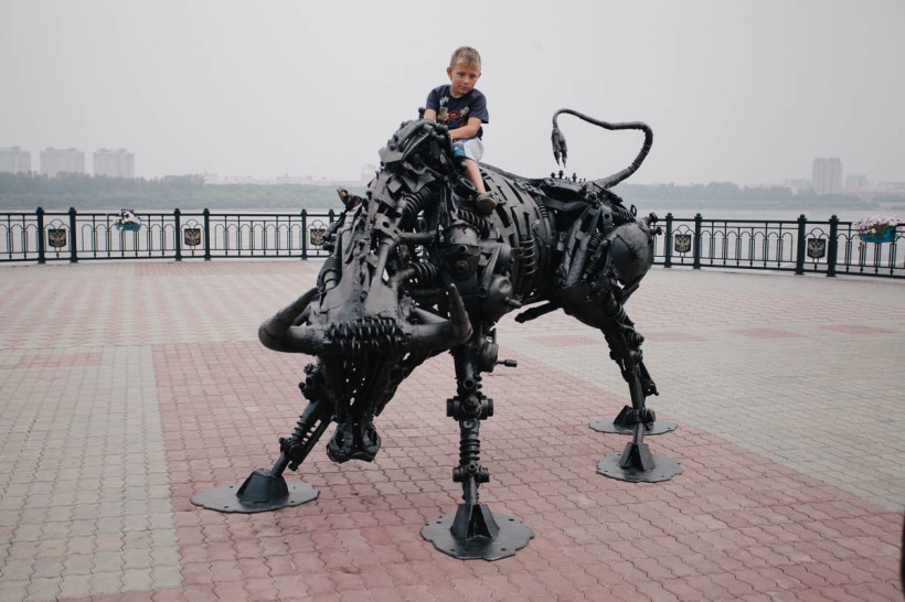На выходных в амурской столице состоялось открытие необычного арт-объекта. На набережной реки Амур в районе Калинина, 1, установили статую металлического быка из старых автомобильных запчастей.