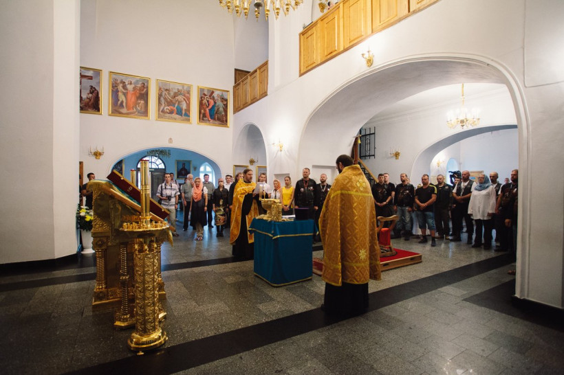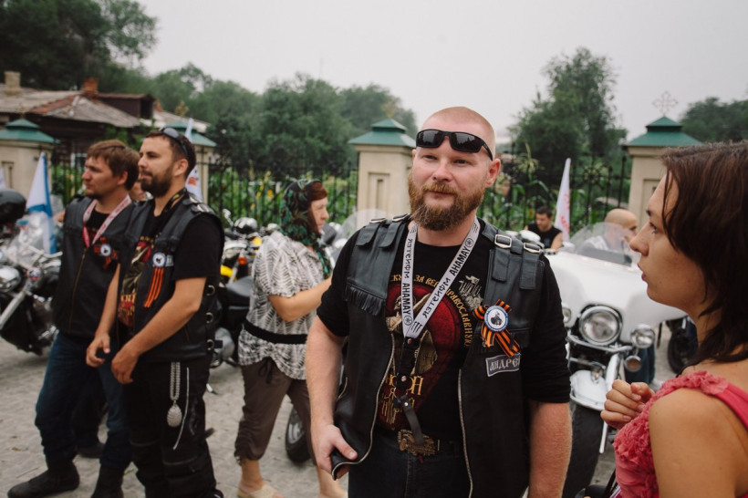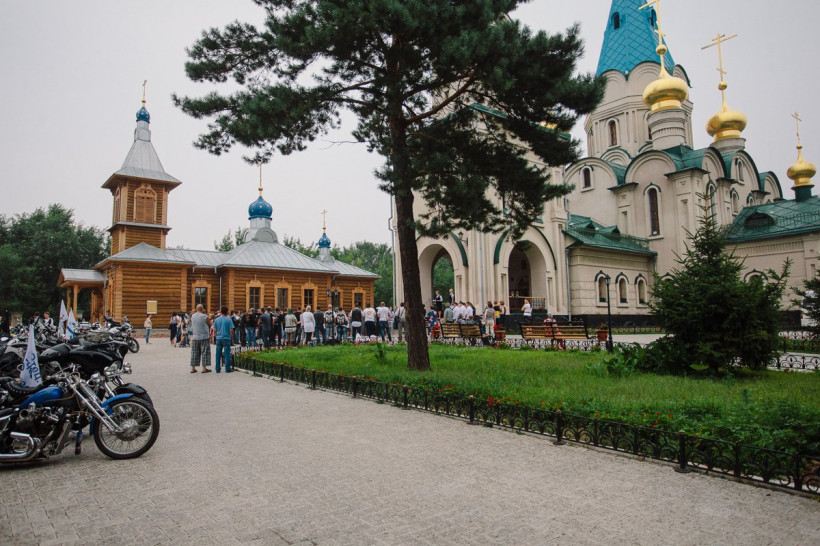 «Рожай, страна огромная!» — под таким лозунгом участники мотопробега «Отцы России за многодетную семью» сегодня посетили Благовещенск. Цель акции — привлечь внимание к теме ответственного отцовства, создать положительный образ мужчины, как главы семьи, и популяризировать многодетные семьи. Шесть красноярских байкеров из клуба сибирских мотоциклистов имени Дмитрия Донского выехали из Владивостока 26 июля, чтобы до 9 сентября проехать на мотоциклах всю страну. В крупных городах по пути следования участники акции посещают колонии для несовершеннолетних, кадетские корпуса, военные части. «Ведем с ребятами мужской разговор, стараемся рассказать и на своем примере показать, что отцом быть не страшно. Это даже круто!» — объясняют мотоциклисты. В Благовещенске мотоциклисты вместе с амурскими байкерами из клубов «Патриот» и «Моторс сити» приняли участие в молебне в кафедральном соборе города за благополучие российской семьи. Кроме того, амурские байкеры вручили цветы и подарки 16 многодетным семьям города. Мотопробег встречал и фотокорреспондент АП Сергей Лазовский.
