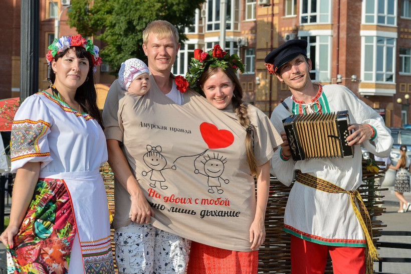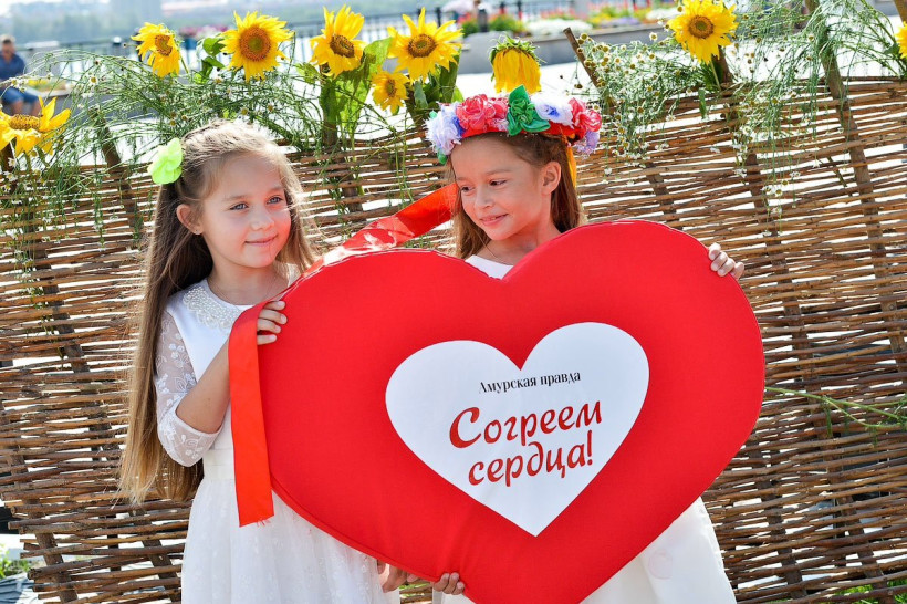 Утром на гранитной набережной Амура появился деревенский плетень с настоящими подсолнухами, люди в российских и украинских народных костюмах, а из палатки неподалеку начал разноситься запах сала с чесноком. Так коллектив «Амурской правды» начал свою благотворительную фотосессию «Согреем сердца» в помощь беженцам с юго-востока Украины, приехавшим в Приамурье. Горожанам предлагалось за символическую плату сфотографироваться или купить фотографии из архива АП. Впрочем, сбор средств — это важная, но не главная цель акции.