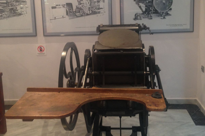 Помимо газеты, у Гаридакиса есть еще одно дело жизни — он открыл на острове музей типографии. В этом уникальном для Греции учреждении собраны редкие печатные станки 19 и 20-го веков, типографское оборудование, инструменты, фотографии и архивные материалы о развитии печатного дела в Греции и на Крите. За отдельными экспонатами Яннис гонялся по всей Европе, отдавая за них сумасшедшие деньги. Члены АРС-ПРЕСС переходили от одного станка к другому, не скрывая восхищения. Самое невероятное — все печатные станки работают, посетителям показывали их в действии.