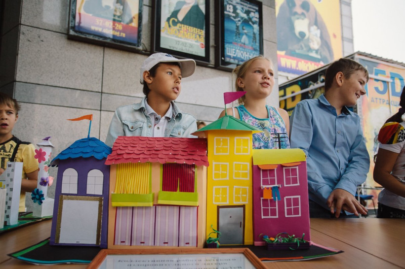 Индустриальной площадкой форума выступил Общественно-культурный центр. У здания расположилась выставка детских работ «Город глазами детей». Среди них — точная копия Триумфальной арки, вырезанная из коробки, разноцветные дома с причудливыми квиллинг-крышами.