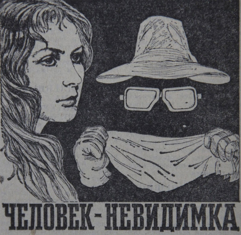 Облкинопрокат выпускает новую научную ленту «Человек-невидимка». Фильм поставлен по мотивам известного одноименного романа Г. Уэллса. Герой его — талантливый ученый, сделавший выдающееся открытие: по своему желанию он может стать невидимым. Автор сценария и режиссер — А. Захаров. В ролях — А. Харитонов, Р. Раманаускас, Н. Данилова, Л. Куравлев и другие.