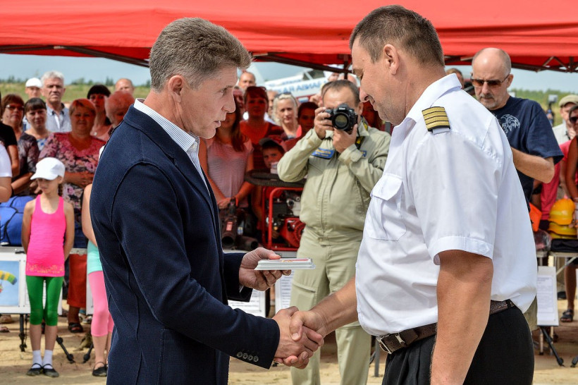 Фоторепортаж с аэродрома СвободногоСегодня, 16 августа, на аэродроме города Свободного отмечали День Воздушного флота России. Такого грандиозного события с авиашоу и показательными выступлениями парашютистов свободненцы даже не припомнят. Как отметил Анатолий Будник, руководитель Дальневосточного межрегионального территориального управления воздушного транспорта Федерального агентства воздушного транспорта (г. Хабаровск), такое мероприятие действительно проходит впервые за последние 40 лет. И это, по его словам, показатель возрождения не только свободненского аэродрома, но и всей амурской авиации. Посмотреть на самолеты и вертолеты, используемые в работе спасателями, сфотографироваться рядом со спусковым космическим аппаратом «Союз» и увидеть, как выглядит этажерка из парашютистов в воздухе приехали жители не только Свободного, но и Благовещенска, Зеи, Шимановска и других городов Приамурья. За праздником наблюдал и фотокорреспондент АП Андрей Оглезнев.
