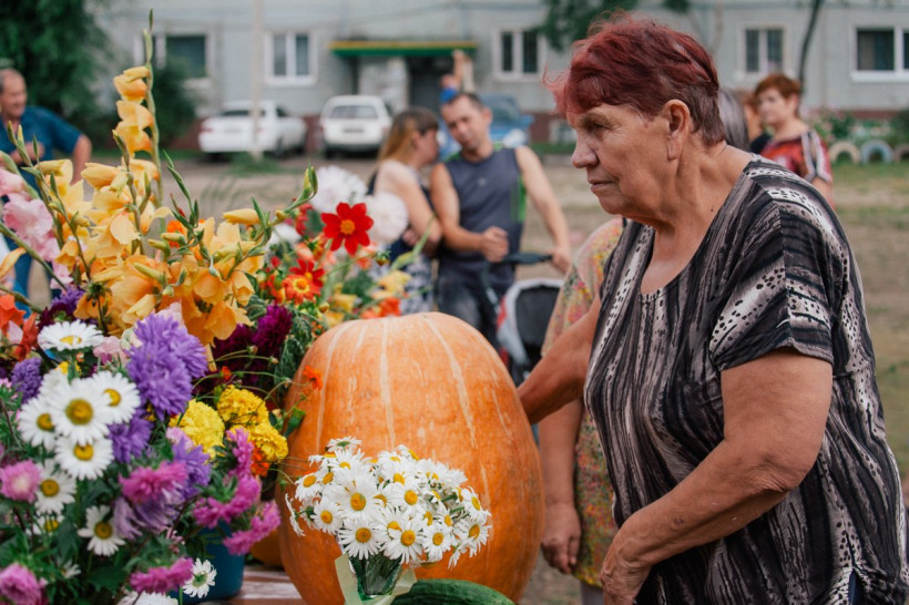 Сороконожка из картофелин, пингвин из баклажанов, лапти из огурцов и царь-тыква – сегодня, 17 августа, в Благовещенске в одном из дворов прошла выставка плодов и овощей, а также конкурс цветов. На выставку приглашались все желающие. Несмотря на пасмурную погоду, мероприятие собрало около 50 благовещенцев. Победителей определяли в номинациях – «Лучший букет», «Самый большой овощ», «Необычная поделка». Размеру овощей, изысканностью садовых букетов и необычным поделкам из плодов удивлялся фотокорреспондент АП Сергей Лазовский.