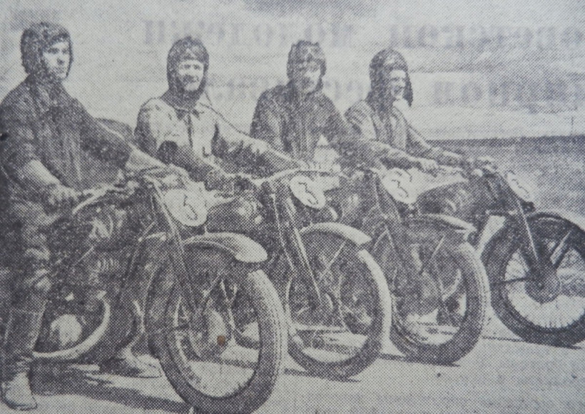«Недавно в Благовещенске проходили соревнования мотоциклистов, в которых приняли участие шесть команд спортивного общества "Динамо" и команда областного клуба ДОСАРМ, — писала о спортивном зрелищном событии «Амурская правда» 21 августа 1951 года. — Лучшие результаты показали мотоциклисты спортивного клуба ДОСАРМ. Расстояние в 50 километров по сильно пересеченной местности они прошли за 1 час одну минуту и 10 секунд. Второе место заняла команда второго райсовета "Динамо". На снимке: Афонин, Косовец, Чупин и Шабанов перед стартом».