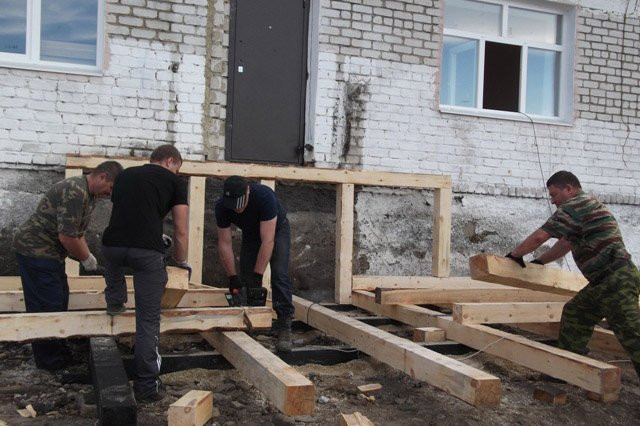 Временное здание для школы в поселке Невер Сковородинского района активно приводят в порядок. Всю эту неделю мужчины-сотрудники районной администрации помогают возводить новое крыльцо к бывшей амбулатории, где с сентября начнут учиться дети.