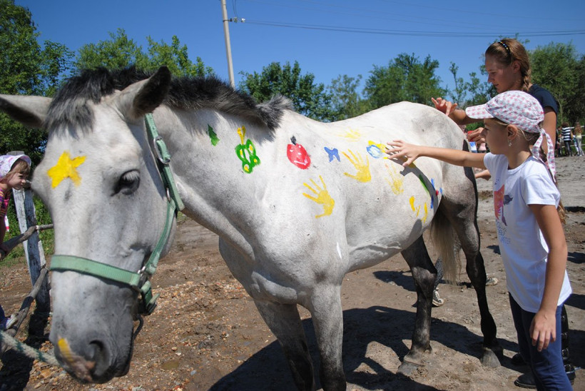 Благовещенцы в горпарке разрисуют лошадей и накормят их яблоками