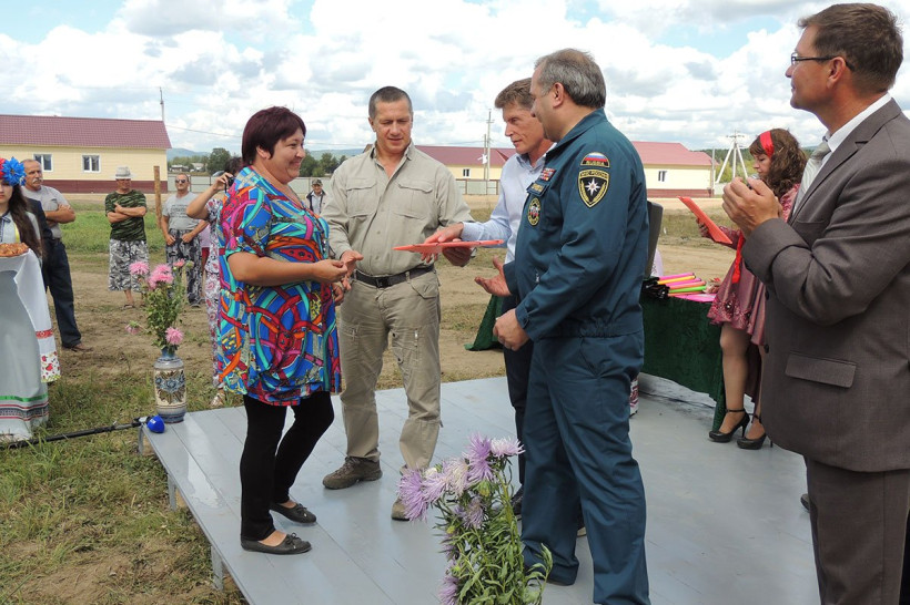 Поздравить жителей Зейского района, переживших временные трудности, и торжественно вручить им ключи от новых домов прилетели высокие гости — полпред президента в ДФО Юрий Трутнев, глава МЧС России Владимир Пучков, коммерческий директор Первого канала Петр Шепин и губернатор Приамурья Олег Кожемяко.
