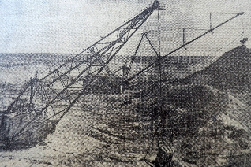 «Монтажная площадка Северо-восточного разреза наполнена неумолкающим гулом работающих механизмов. Рокочут компрессоры, а в их монотонную песню вливаются резкие звуки шлифовальных пневмомашин, — поэтизирует труд угольщиков Райчихинска «Амурская правда» 31 августа 1961 года. — Вокруг площадки аккуратно уложены недавно полученные крупные детали. Здесь идет сборка шагающего экскаватора "ЭШ-15/90". Эта машина войдет в строй в начале будущего года. А нынче семья больших экскаваторов комбината пополнилась тремя новыми и составляет сейчас 28 машин. Райчихинский парк шагающих экскаваторов — один из крупнейших в стране». На снимке: спаренная работа экскаваторов на одном из разрезов комбината.