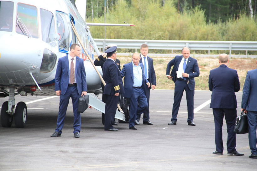 Три белых вертолета президентского кортежа приземлились около четырех часов дня на парковке кафе у федеральной трассы в районе Углегорска. Владимира Путина сопровождали губернатор Приамурья Олег Кожемяко, вице-премьер Дмитрий Рогозин, зампред и полпред президента на Дальнем Востоке Юрий Трутнев и десант областных и федеральных чиновников. Главное, что интересовало главу государства, — как за прошедшие после его поездки четыре года в Амурской области выполнены его поручения по развитию трассы.