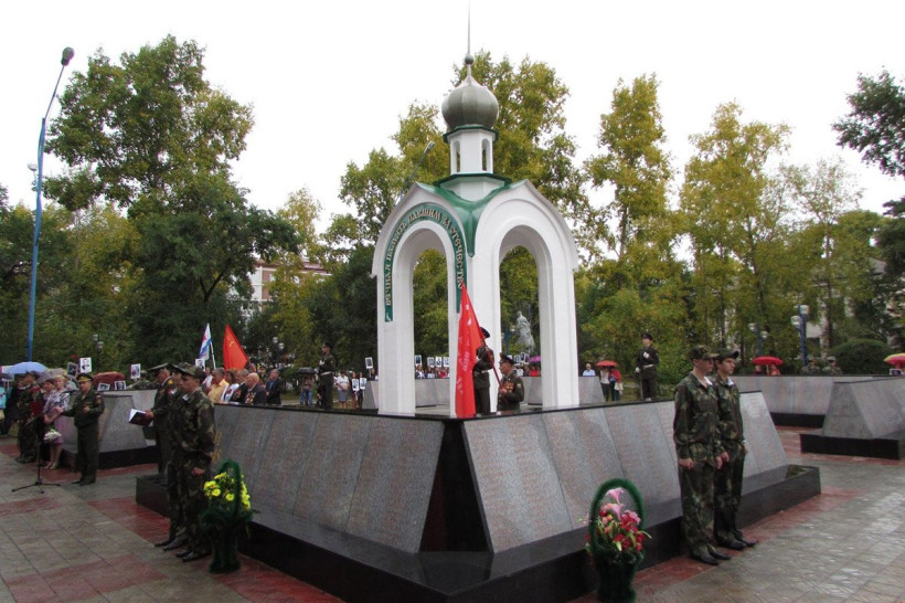 На плитах, которые окружают часовню, выгравированы имена более 3 тысяч воинов, принявших участие в Великой Отечественной войне, в военных действиях на острове Даманском, в Афганистане, Эфиопии, на Северном Кавказе.