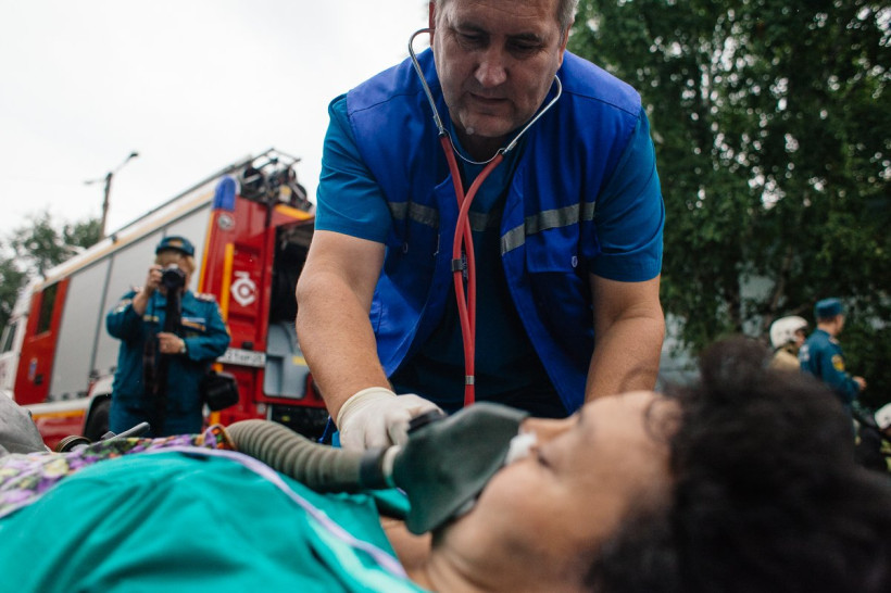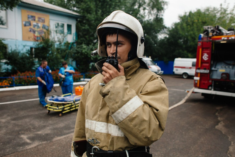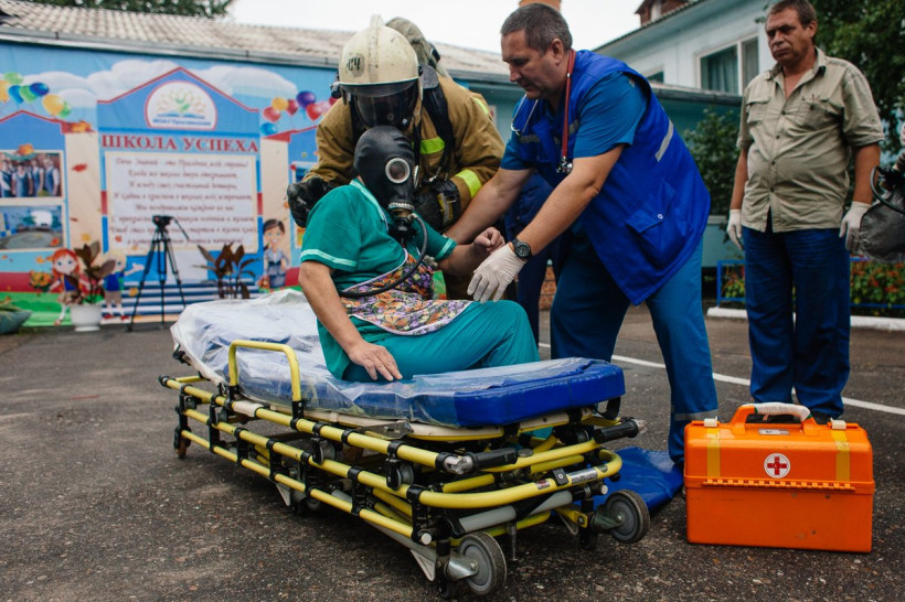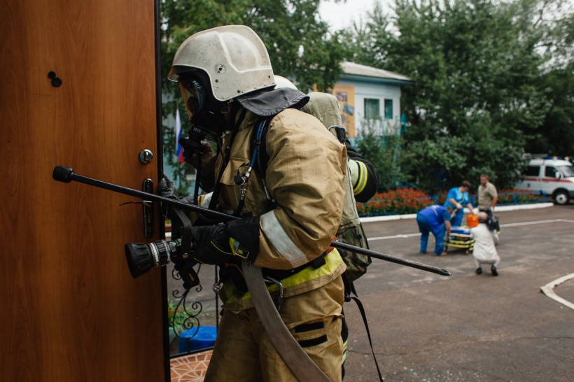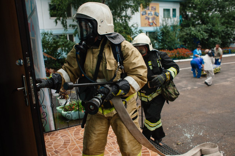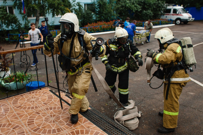 Спасатели репетировали тушение пожара в благовещенской школе (24 фото)