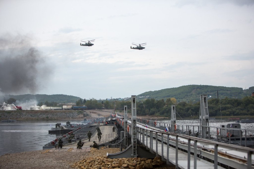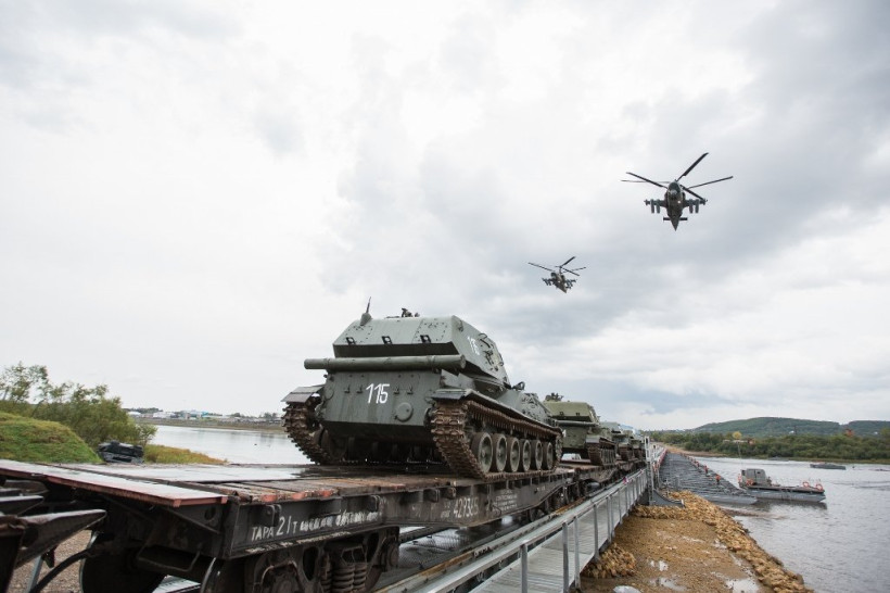 На юге Амурской области в Бурейском районе прошла настоящая мини-война с налетами истребителей СУ-27, вертолетов К-52 «Аллигатор», взрывами моста и наведением уникального понтонного сооружения через Бурею для железнодорожного эшелона с танками. Первыми в своем роде учениями, в которых приняли участие более 400 человек личного состава и сотни единиц спецтехники, командовал лично замминистра обороны России Дмитрий Булгаков. Как все было вблизи, смотрите в фоторепортаже специального корреспондента ГТРК «Амур» Игоря Агеенко.