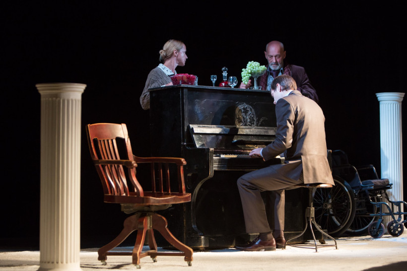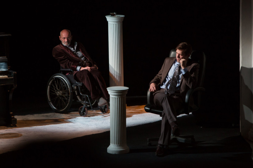 Актеры антрепризы играли проникновенно. Каждый был убедителен по-своему. Красавец-сын (Селезнев) словно вышел из кадра старого советского кино про героев-комсомольцев. Несмотря на жестокие законы бизнеса, он благороден. Он тоже идеалист, как его мама. Это наследственное. Мать (Неволина) хрупкая, трогательная и нежная. Когда она говорит о своей родине-уродине, то ее лицо светится. Она была счастлива. Дед (Козырев) с холодными, бесцветными глазами убийцы и палача тоже убедителен.