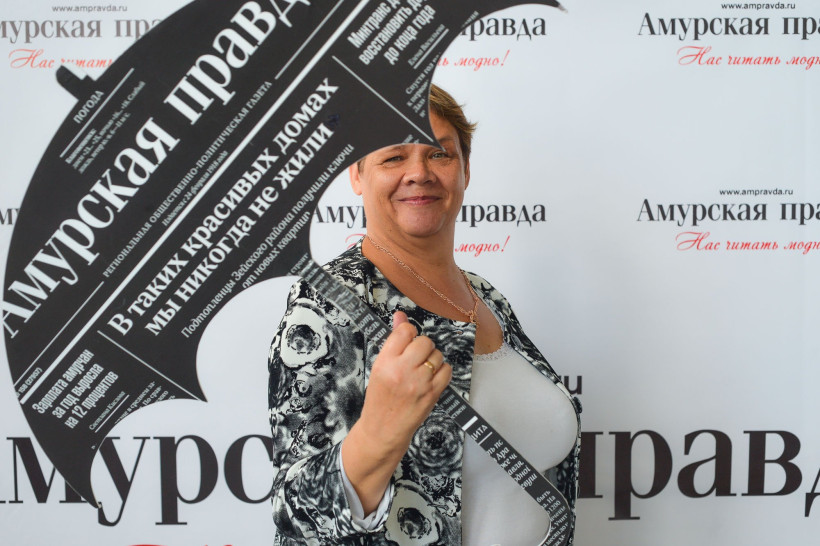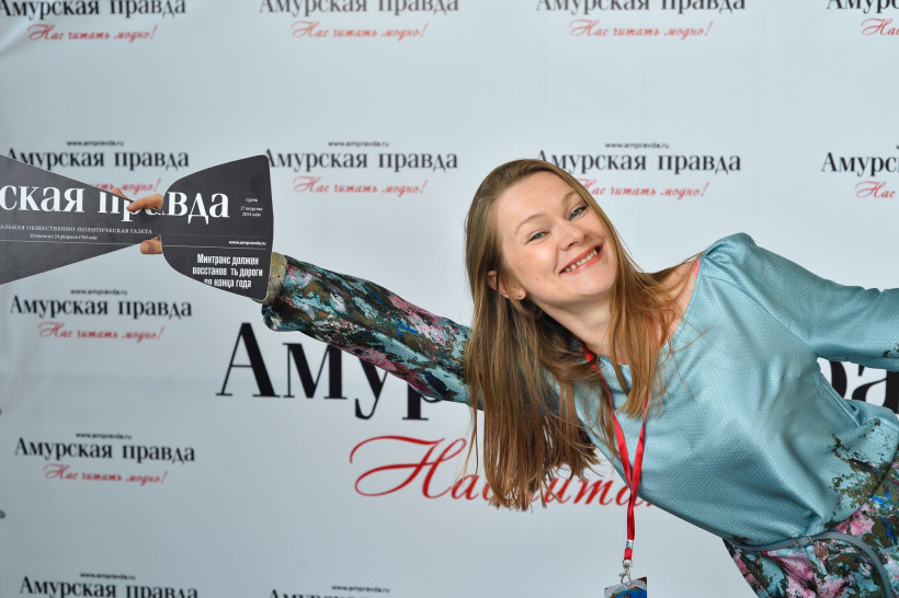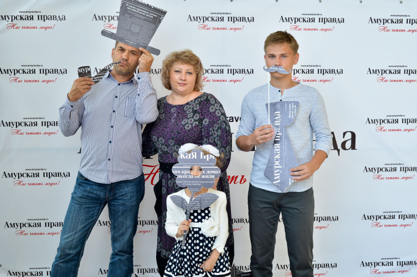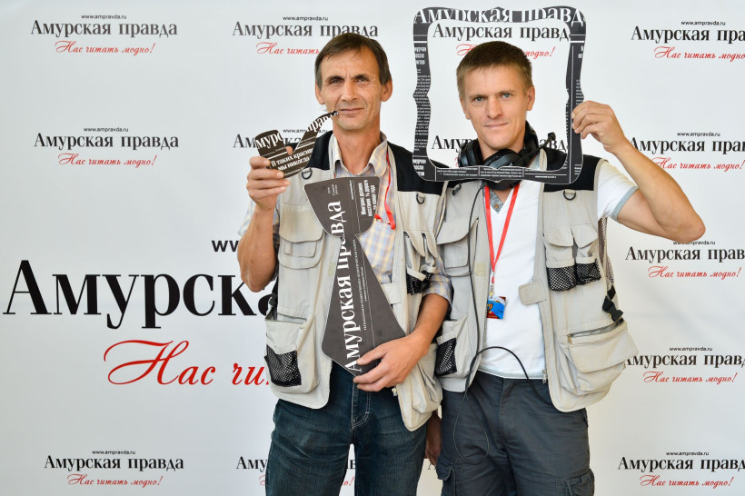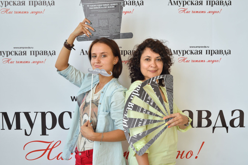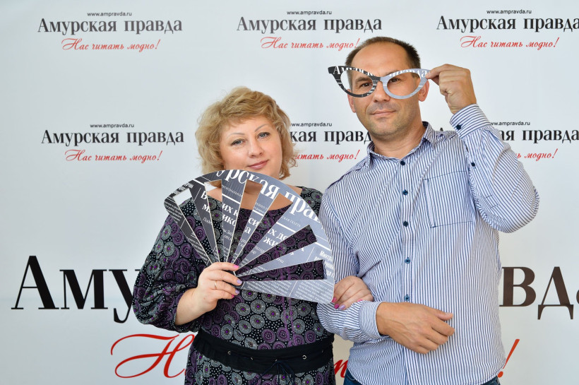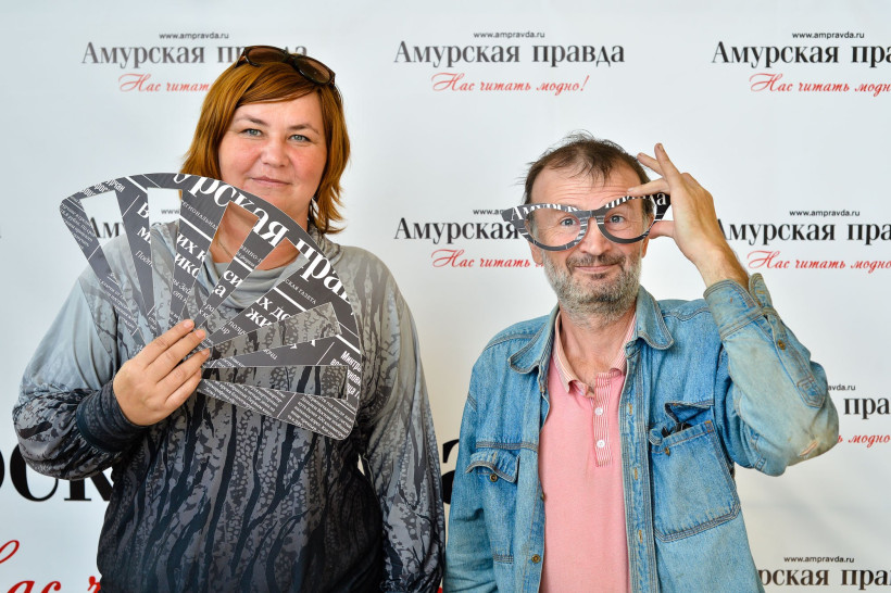 Красивую точку в работе нашего театрального фотосалона поставили российские актеры и амурские чиновники. Вчера, 14 сентября, под прицел фотокамеры Андрея Оглезнева попали глава Свободного Роберт Каминский и заместитель главы администрации Благовещенска по социальным вопросам Валентина Калита. Также на фоне баннера «Амурской правды» засветились актрисы Светлана Тома, сыгравшая одну из главных ролей в конкурсном фильме «Девять дней и одно утро», и Валентина Ананьева.