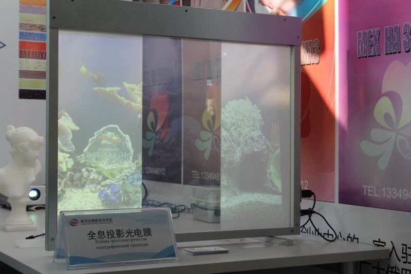 Один из образцов, представленный на выставке «АмурЭкспоФорум-2014», похож на плоский аквариум: «рыбки» в нем парят, словно в воздухе. Голографическая пленка может быть использована в домашнем интерьере, в рекламной индустрии и других областях.