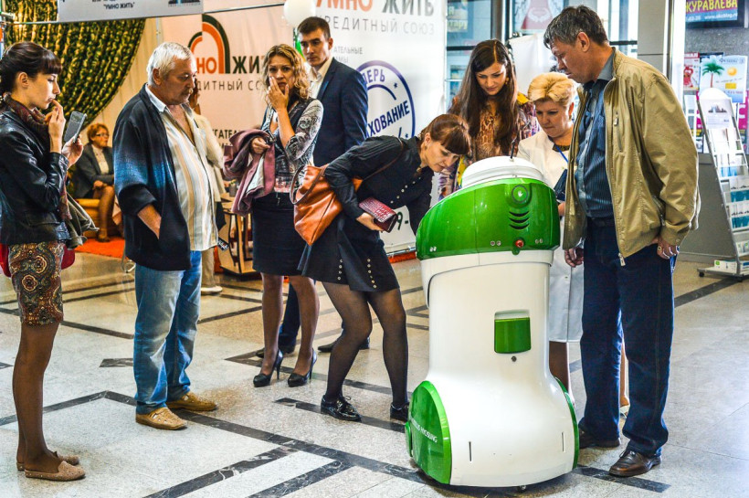 Сотрудники Дальневосточного Сбербанка приняли участие в «АмурЭкспоФоруме-2014», который проходил в областном центре с 19 по 22 сентября. За три основных дня работы ярмарку посетили почти 12 тысяч человек. Банкиры привезли робота-консультанта, который умеет распознавать местонахождение посетителя, следовать к нему, разговаривать и озвучивает информацию, которую показывает на экране.