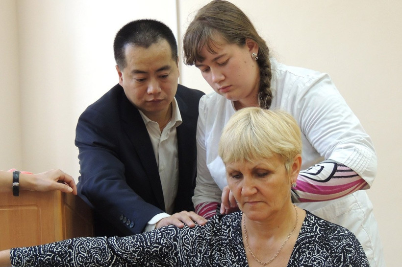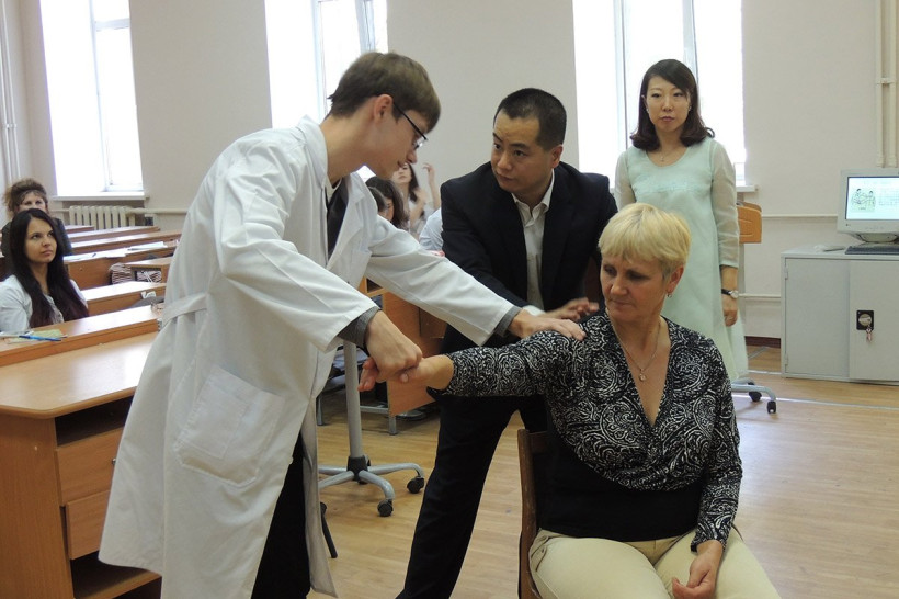 Кроме будущих медиков, за партами в надежде получить новые экзотические знания парами сидели как молодые, так и совсем взрослые амурчане. Все сомнения развеялись сразу после звонка, когда в кабинет вошла китайская переводчица, а чуть позже и сам гость — специалист по традиционному китайскому массажу и иглоукалыванию Шу Чжань.