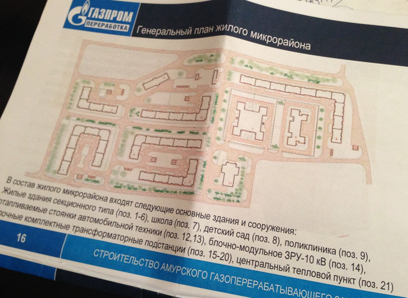 Как рассказал АП гендиректор компании «Газпром переработка» Юрий Важенин, на сегодняшний день составлен генеральный план будущего микрорайона, однако он не утвержден. «Газпром переработка» назначена заказчиком строительства под Свободным газоперерабатывающего завода. Предполагается, что новый микрорайон станет местом жительства для 20 тысяч работников предприятия и строителей.