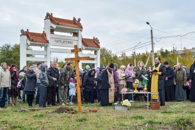 1. На месте строительства храма в микрорайоне Благовещенска установили крест
