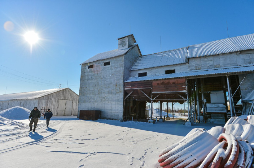 Всего же в этом хозяйстве засеяли сои на площади 9 тысяч гектар. Убрали пока — 8 тысяч Га. В закромах уже находится 30 тысяч тонн сои. За неделю собираются убрать и оказавшиеся под снегом поля. В сложившихся условиях работать придется ночью.