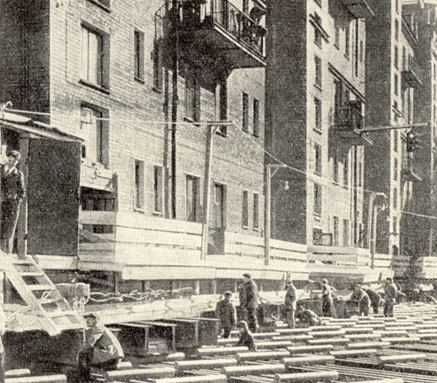 «В будущем году москвичи станут свидетелями такой картины. Огромный восьмиэтажный корпус, четверть века простоявший на месте, вдруг переезжает на другое место, — писала «Амурская правда» в 1960 году. — Дом-новосел движется со скоростью улитки — 1-2 метра в час. При этом жизнь в доме идет своим чередом. По этажам ходят люди, жильцы готовят обеды, принимают ванну, разговаривают по телефону… По решению Мосгорисполкома сейчас начались проектно-изыскательные работы по подготовке к передвижке 26 жилых корпусов».