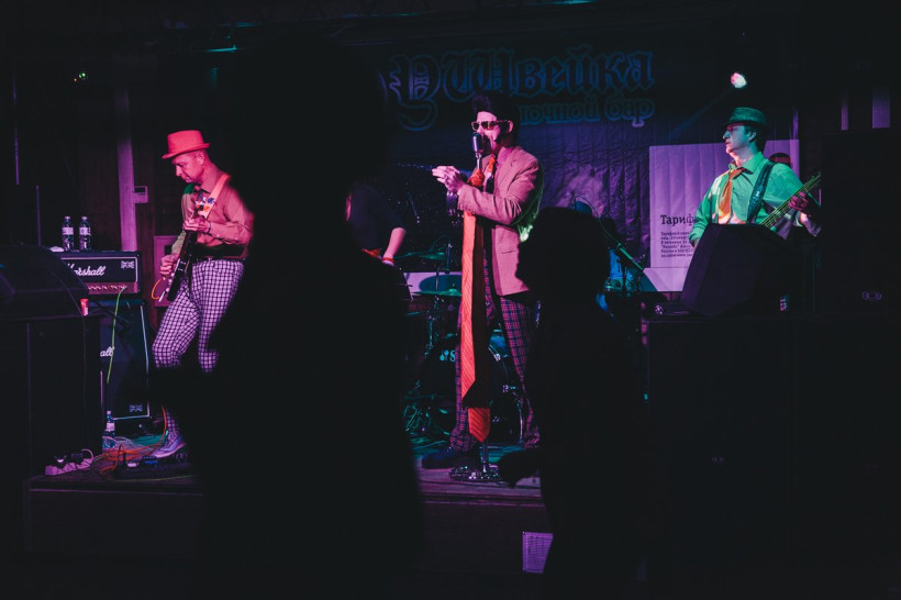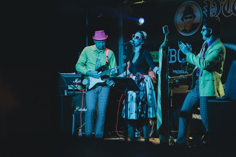 6 ноября ретро-бэнд «Бриолин» из Владивостока дала 102-й концерт за год. Приморские стиляги выступают в Благовещенске второй раз. До амурской столицы на этот раз добирались непросто. «Кому в голову пришла идея о том, что поезд Москва-Владивосток не востребован?!» — недоумевает вокалист Иван «Элвис» Аньков. Впрочем, ни проблемы с дорогой, ни пришедшие холода не помешали стилягам привезти в Благовещенск огромный оранжевый галстук, шум морского прибоя и зажигательные хиты от элвисовской Pretty woman до бравого «Конечно, Вася» и чайфовых «Буги-вуги». Многие композиции — из репертуара группы «Браво». Шлягеры 50—80-х от мировых «производителей» рок-н-ролла звучат по-новому — на современных инструментах. А вот микрофон у вокалиста — настоящий раритетный «шестидесятник». На концерте, пожалуй, самой стиляжной группы Дальнего Востока побывал фотокорреспондент АП Сергей Лазовский.